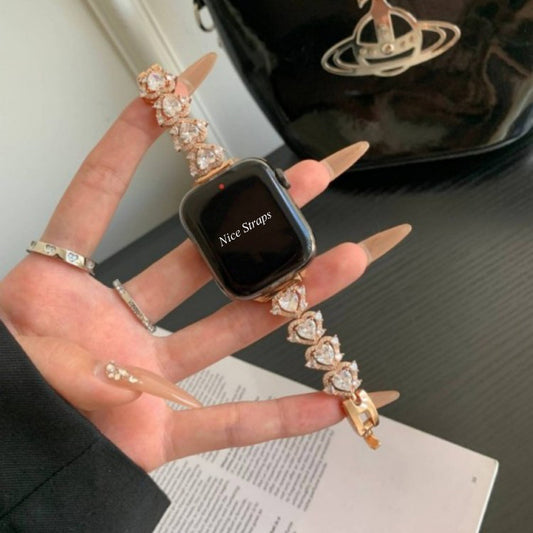 Zircon Heart-Shaped Metal Strap for Apple Watch Series 10 9 8 7 6 SE