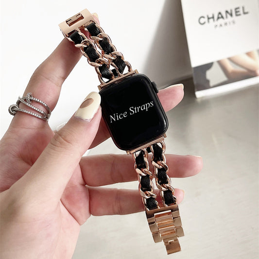 Luxury Stainless Steel Cowboy Chain+Leather Apple Watch Strap