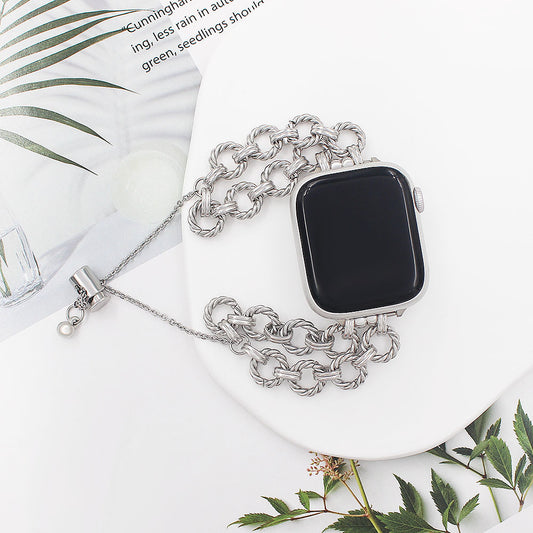 Stainless Steel Metal Cowboy Chain Ring Apple Watch Strap